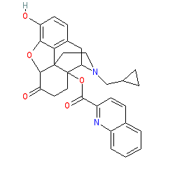| SMILES | C1CC1CN2CCC34C5C(=O)CCC3(C2CC6=C4C(=C(C=C6)O)O5)OC(=O)C7=NC8=CC=CC=C8C=C7 |