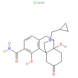 | SMILES | C1CC1CN2CCC34CC(=O)CCC3(C2CC5=C4C(=C(C=C5)C(=O)N)O)O.Cl |