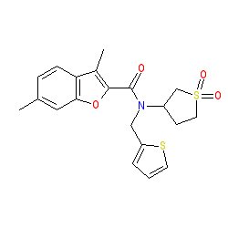 | SMILES | Cc1ccc2c(C)c(C(=O)N(Cc3cccs3)C3CCS(=O)(=O)C3)oc2c1 |