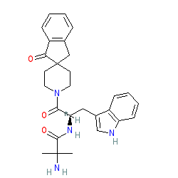 | SMILES | CC(C)(N)C(=O)N[C@H](Cc1c[nH]c2ccccc12)C(=O)N1CCC2(CC1)Cc1ccccc1C2=O |