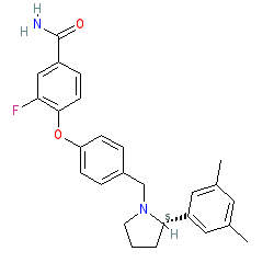 | SMILES | Cc1cc(C)cc(c1)[C@@H]1CCCN1Cc1ccc(cc1)Oc1ccc(cc1F)C(=O)N |
