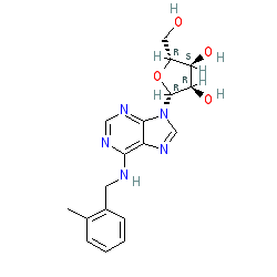 | SMILES | OC[C@H]1O[C@H]([C@@H]([C@@H]1O)O)n1cnc2c1ncnc2NCc1ccccc1C |