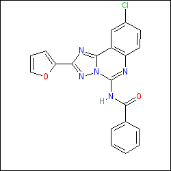 | SMILES | Clc1ccc2c(c1)c1nc(nn1c(n2)NC(=O)c1ccccc1)c1ccco1 |