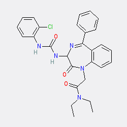 | SMILES | CCN(CC)C(=O)CN1C(=O)C(NC(=O)Nc2ccccc2Cl)N=C(c2ccccc2)c2ccccc21 |