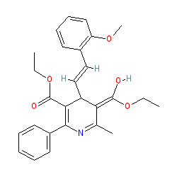 | SMILES | CCOC(=O)C1=C(c2ccccc2)N=C(C)/C(=C(/O)OCC)C1/C=C/c1ccccc1OC |
