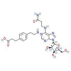 | SMILES | NC(=O)CCNC1=C2N=CN([C@@H]3O[C@H](CO)[C@@H](O)[C@H]3O)C2N=CN1NCCc1ccc(CCC(=O)O)cc1 |