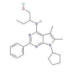 | SMILES | CCC(CO)Nc1nc(-c2ccccc2)nc2c1c(C)c(C)n2C1CCCC1 |