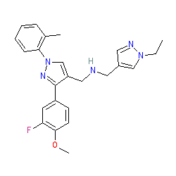 | SMILES | CCn1cc(CNCc2cn(-c3ccccc3C)nc2-c2ccc(OC)c(F)c2)cn1 |