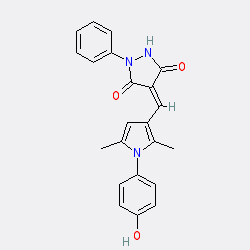 | SMILES | Cc1cc(/C=C2/C(=O)NN(c3ccccc3)C2=O)c(C)n1-c1ccc(O)cc1 |