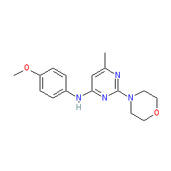 | SMILES | COc1ccc(Nc2cc(C)nc(N3CCOCC3)n2)cc1 |