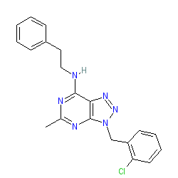 | SMILES | Cc1nc(NCCc2ccccc2)c2nnn(Cc3ccccc3Cl)c2n1 |