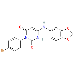 | SMILES | O=c1cc(Nc2ccc3c(c2)OCO3)[nH]c(=O)n1-c1ccc(Br)cc1 |