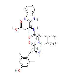 | SMILES | Oc1cc(C)c(c(c1)C)C[C@@H](C(=O)N1Cc2ccccc2C[C@H]1C(=O)N[C@H](c1[nH]c2c(n1)cccc2)CC(=O)O)N |