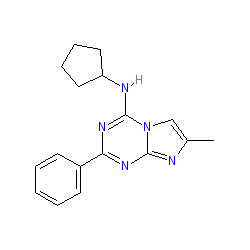 | SMILES | Cc1cn2c(NC3CCCC3)nc(-c3ccccc3)nc2n1 |