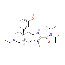 | SMILES | CCN1CC[C@]2(c3cccc(O)c3)Cc3[nH]c(C(=O)N(C(C)C)C(C)C)c(C)c3C[C@H]2C1 |