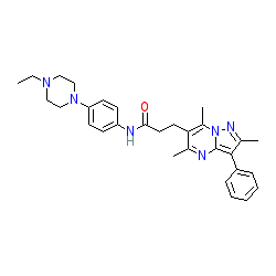 | SMILES | CCN1CCN(c2ccc(NC(=O)CCc3c(C)nc4c(-c5ccccc5)c(C)nn4c3C)cc2)CC1 |