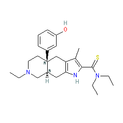 | SMILES | CCN1CC[C@]2(c3cccc(O)c3)Cc3c([nH]c(C(=S)N(CC)CC)c3C)C[C@H]2C1 |