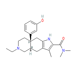 | SMILES | CCN1CC[C@]2(c3cccc(O)c3)Cc3[nH]c(C(=O)N(C)C)c(C)c3C[C@H]2C1 |