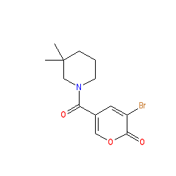 | SMILES | CC1(C)CCCN(C(=O)c2coc(=O)c(Br)c2)C1 |