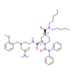 | SMILES | CCCCCN(CCCCC)C(=O)[C@H]1CCN(C(=O)N(c2ccccc2)c2ccccc2)[C@H](C(=O)NCCN(CC(N)=O)Cc2ccccc2OC)C1 |