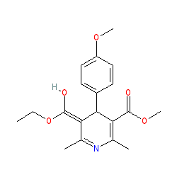| SMILES | CCO/C(O)=C1\C(C)=NC(C)=C(C(=O)OC)C1c1ccc(OC)cc1 |