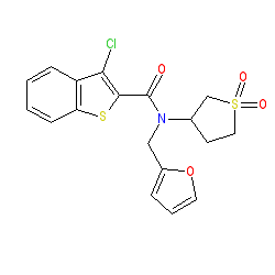 | SMILES | O=C(c1sc2ccccc2c1Cl)N(Cc1ccco1)C1CCS(=O)(=O)C1 |