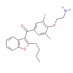 | SMILES | CCCCc1oc2ccccc2c1C(=O)c1cc(I)c(OCCN)c(I)c1 |
