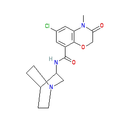 | SMILES | CN1C(=O)COc2c(C(=O)NC3CN4CCC3CC4)cc(Cl)cc21 |