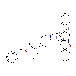 | SMILES | CCN(C(=O)OCc1ccccc1)C1CCN(C[C@@H]2[C@@H](c3ccccc3)CN3OC4(CCCCC4)C[C@@H]23)CC1 |