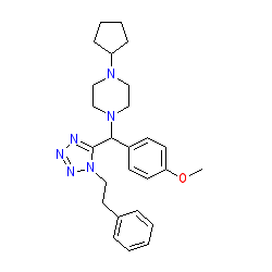 | SMILES | COc1ccc(C(c2nnnn2CCc2ccccc2)N2CCN(C3CCCC3)CC2)cc1 |