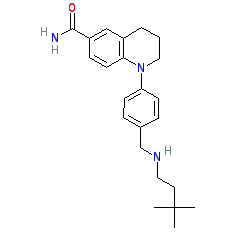 | SMILES | CC(C)(C)CCNCc1ccc(N2CCCc3cc(C(N)=O)ccc32)cc1 |