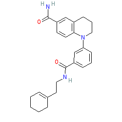 | SMILES | NC(=O)c1ccc2c(c1)CCCN2c1cccc(C(=O)NCCC2=CCCCC2)c1 |
