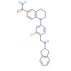 | SMILES | NC(=O)c1ccc2c(c1)CCCN2c1ccc(CNC2Cc3ccccc3C2)c(Cl)c1 |