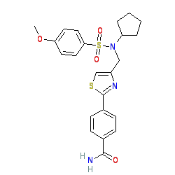 | SMILES | COc1ccc(S(=O)(=O)N(Cc2csc(-c3ccc(C(N)=O)cc3)n2)C2CCCC2)cc1 |