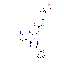 | SMILES | Cn1cc2c(nc(NC(=O)Nc3ccc4c(c3)COC4)n3nc(-c4ccco4)nc23)n1 |