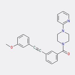 | SMILES | COc1cccc(C#Cc2cccc(C(=O)N3CCN(c4ccccn4)CC3)c2)c1 |