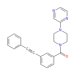 | SMILES | O=C(c1cccc(C#Cc2ccccc2)c1)N1CCN(c2cnccn2)CC1 |