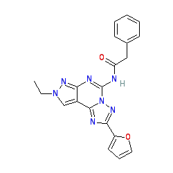 | SMILES | CCn1cc2c(nc(NC(=O)Cc3ccccc3)n3nc(-c4ccco4)nc23)n1 |