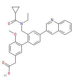 | SMILES | CCN(Cc1cc(-c2cnc3ccccc3c2)ccc1-c1cc(CC(=O)O)ccc1OC)C(=O)C1CC1 |