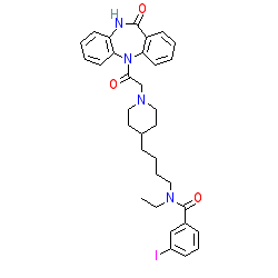 | SMILES | CCN(CCCCC1CCN(CC(=O)N2c3ccccc3NC(=O)c3ccccc32)CC1)C(=O)c1cccc(I)c1 |
