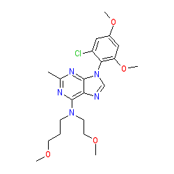 | SMILES | COCCCN(CCOC)c1nc(C)nc2c1ncn2-c1c(Cl)cc(OC)cc1OC |
