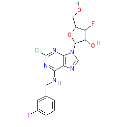 | SMILES | OCC1OC(n2cnc3c(NCc4cccc(I)c4)nc(Cl)nc32)C(O)C1F |