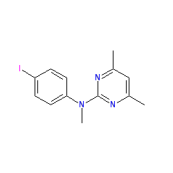 | SMILES | Cc1cc(C)nc(N(C)c2ccc(I)cc2)n1 |