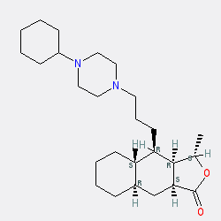 | SMILES | C[C@@H]1OC(=O)[C@H]2C[C@H]3CCCC[C@@H]3[C@@H](CCCN3CCN(C4CCCCC4)CC3)[C@@H]12 |