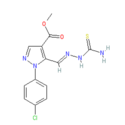 | SMILES | COC(=O)c1cnn(-c2ccc(Cl)cc2)c1/C=N/NC(N)=S |