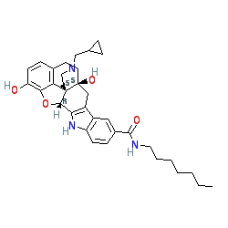 | SMILES | CCCCCCCNC(=O)c1ccc2[nH]c3c(c2c1)C[C@@]1(O)C2Cc4ccc(O)c5c4[C@@]1(CCN2CC1CC1)[C@H]3O5 |