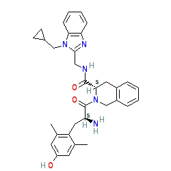 | SMILES | Cc1cc(O)cc(C)c1C[C@H](N)C(=O)N1Cc2ccccc2C[C@H]1C(=O)NCc1nc2ccccc2n1CC1CC1 |