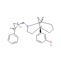 | SMILES | Oc1cccc([C@]23CCC[C@H](C2)N(C[C@H]2C[C@@H]2c2ccccc2)CC3)c1 |