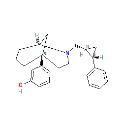 | SMILES | Oc1cccc([C@@]23CCC[C@@H](C2)N(C[C@@H]2C[C@@H]2c2ccccc2)CC3)c1 |
