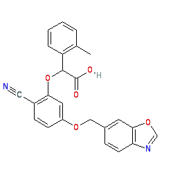 | SMILES | Cc1ccccc1C(Oc1cc(OCc2ccc3ncoc3c2)ccc1C#N)C(=O)O |